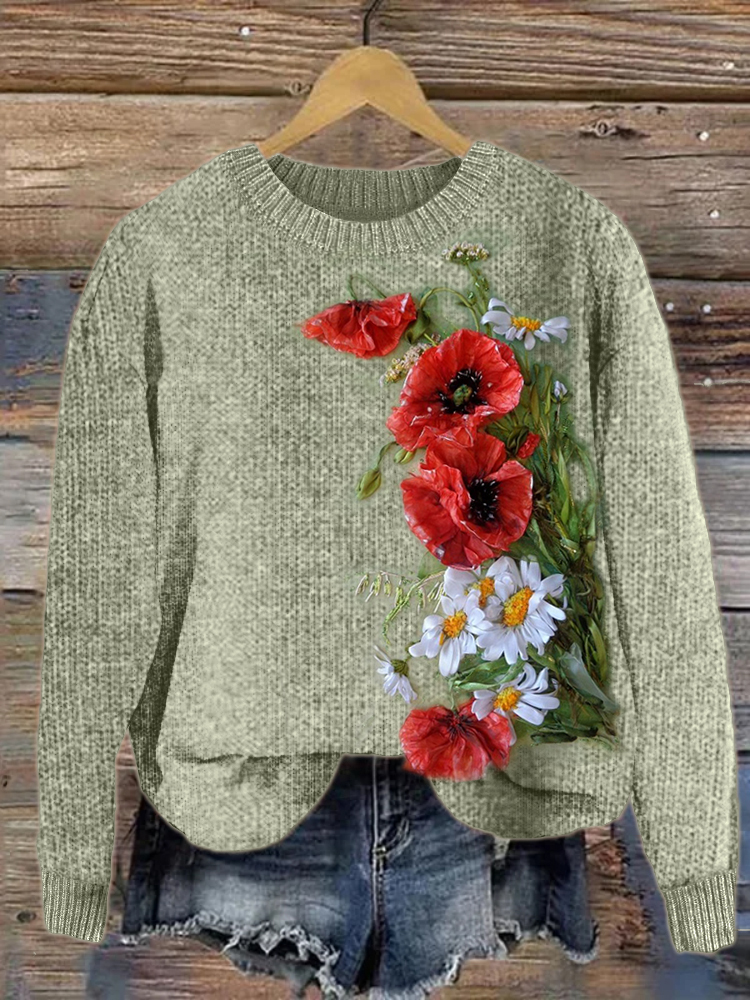 Poppy & Daisy Floral Satin Art Cozy Knit Sweater