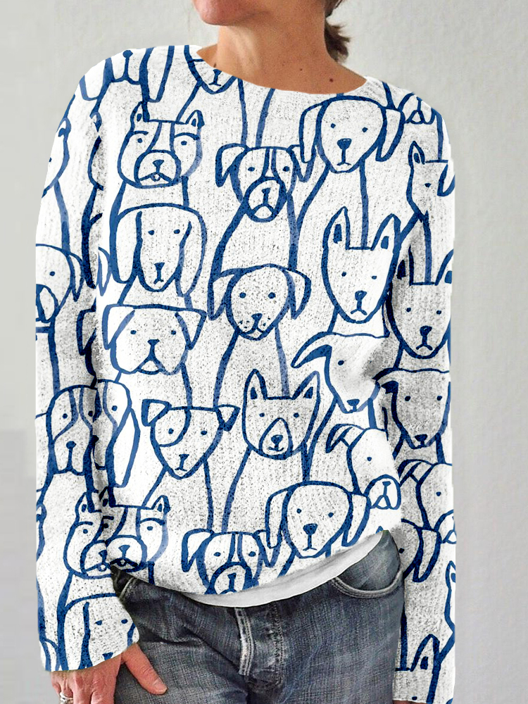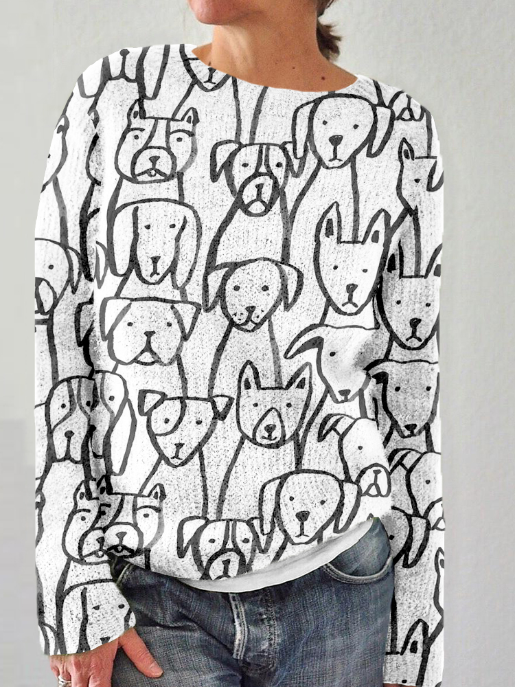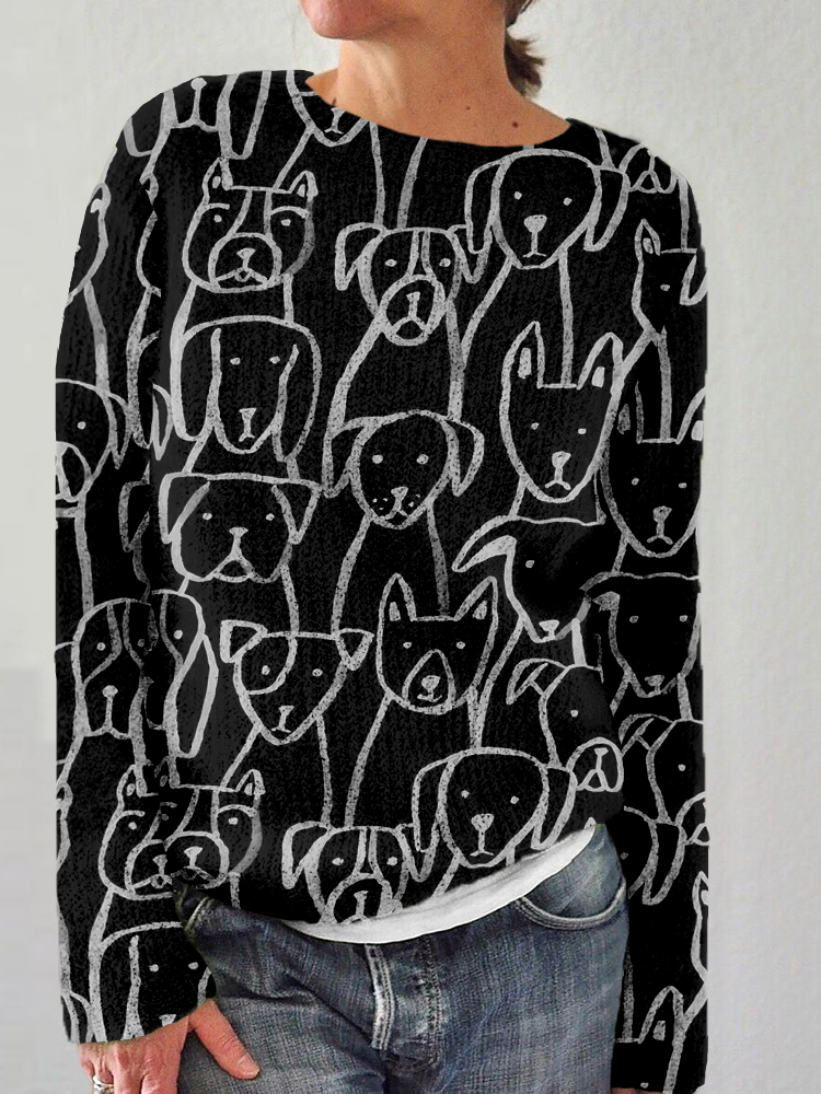 • Puppy Pile Graphic Crew Neck Cozy Sweater