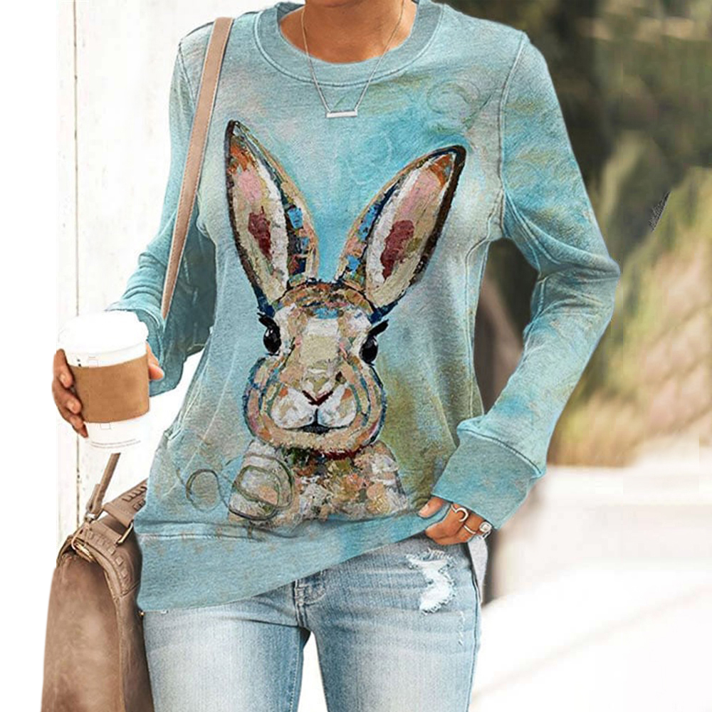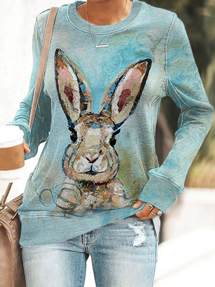Rabbit Print Round Neck Long Sleeve Sweatshirt