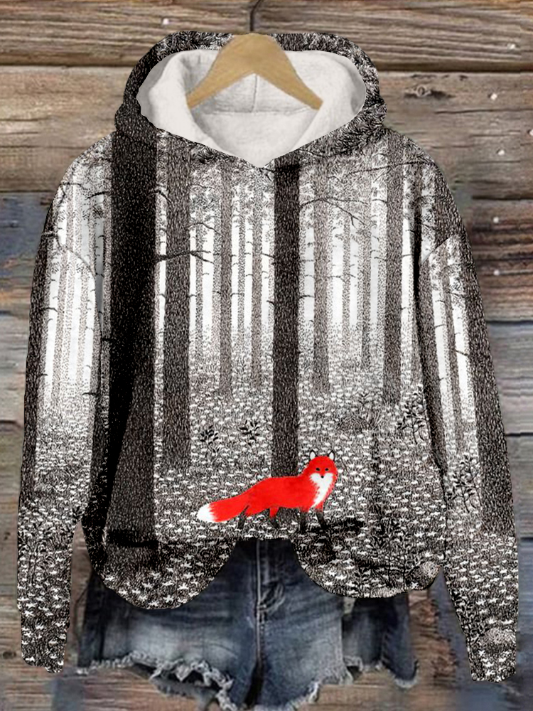 • Red Fox in the Forest Graphic Cozy Hoodie