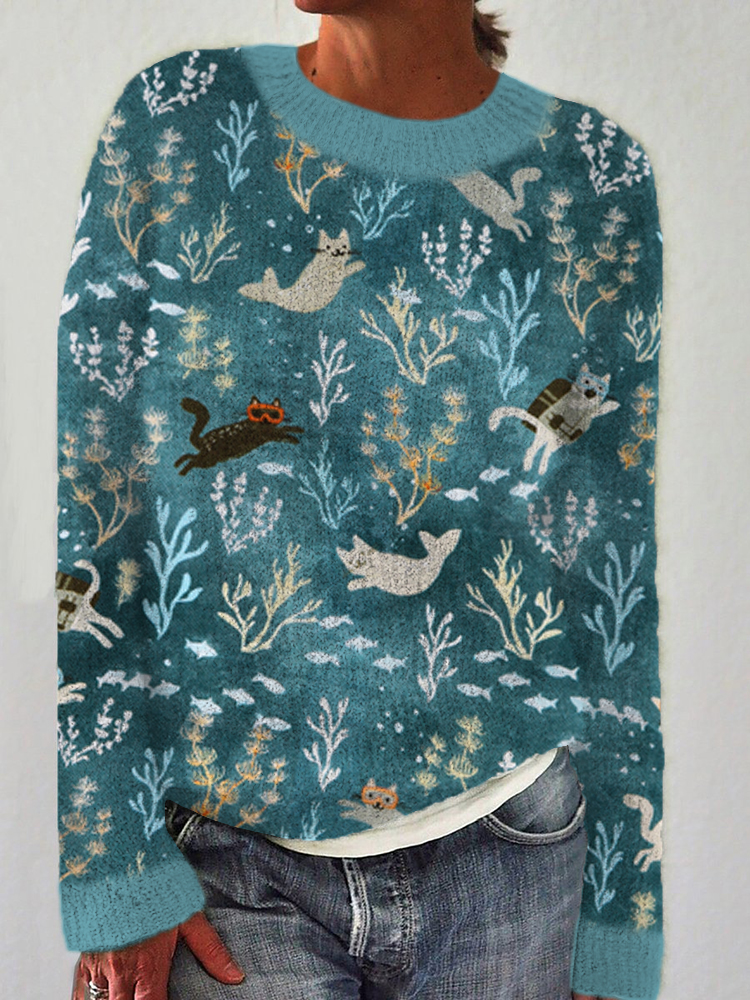 • Swimming Cat Cozy Sweater