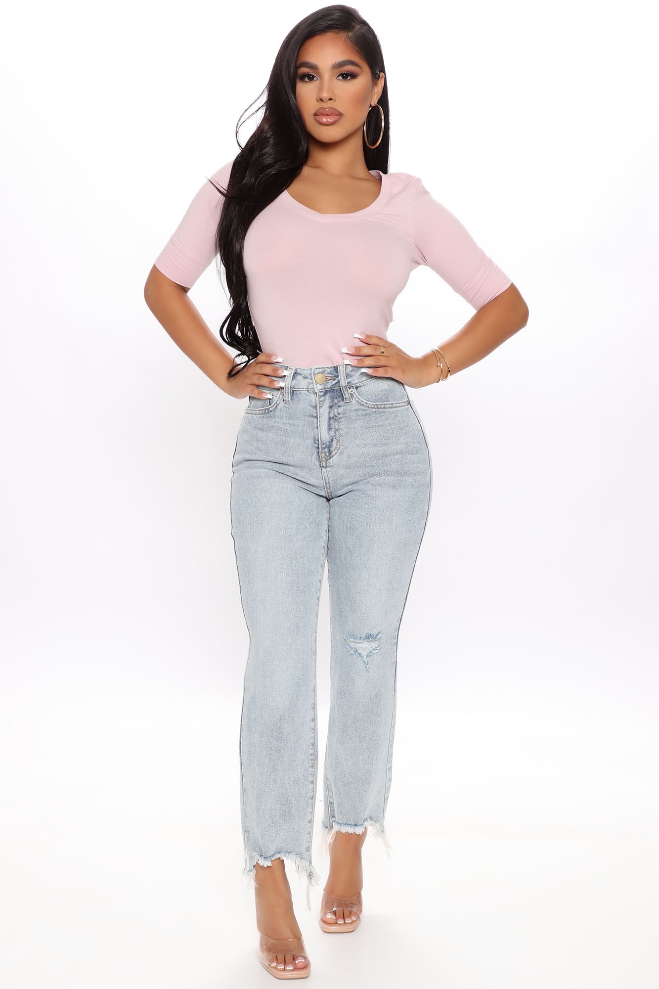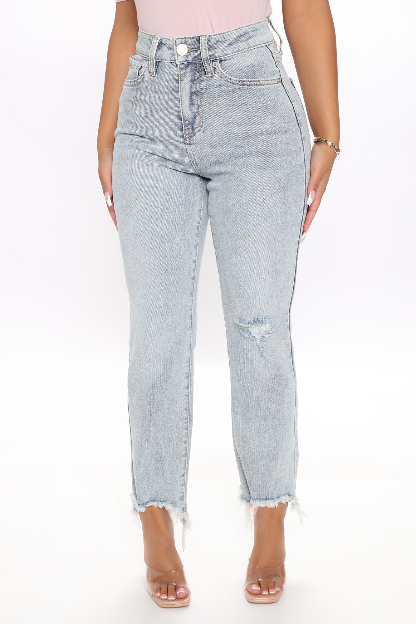 Time Out Crossover Distressed Vintage Ankle Jeans - Light Blue Wash