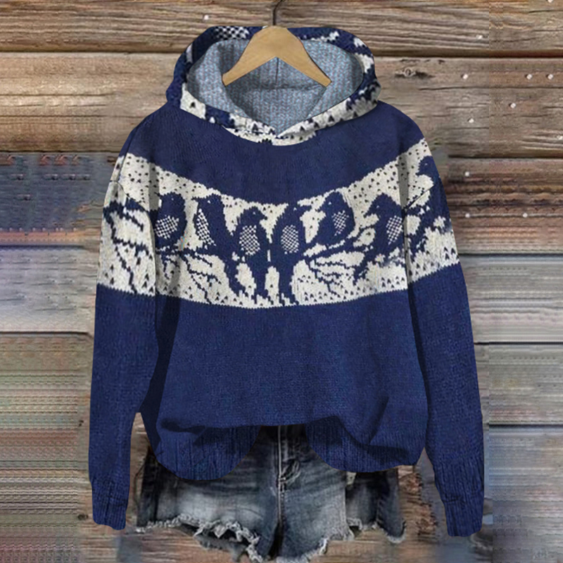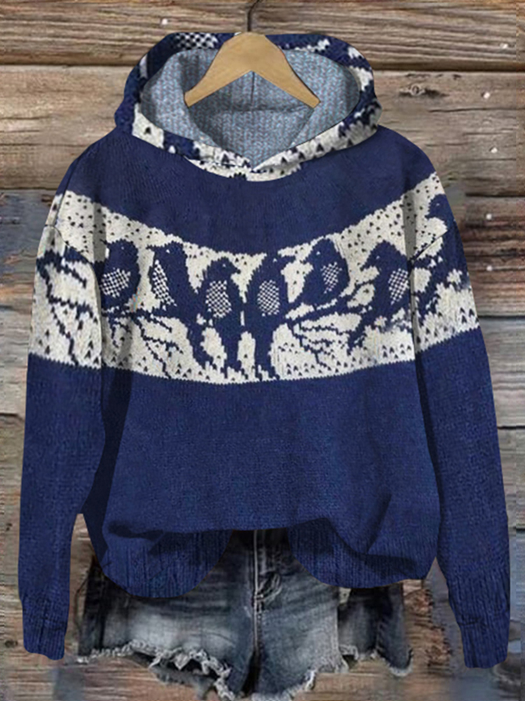 • Vintage Bird Jacquard Knit Hooded Sweater