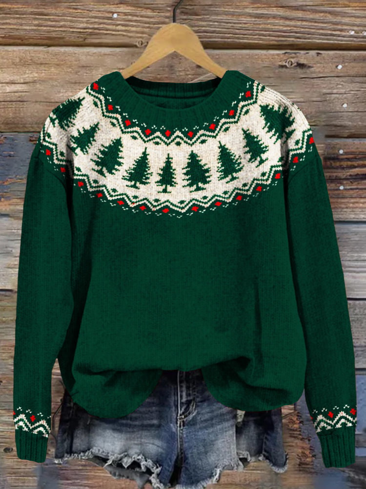 • Vintage Christmas Trees Graphic Cozy Knit Sweater