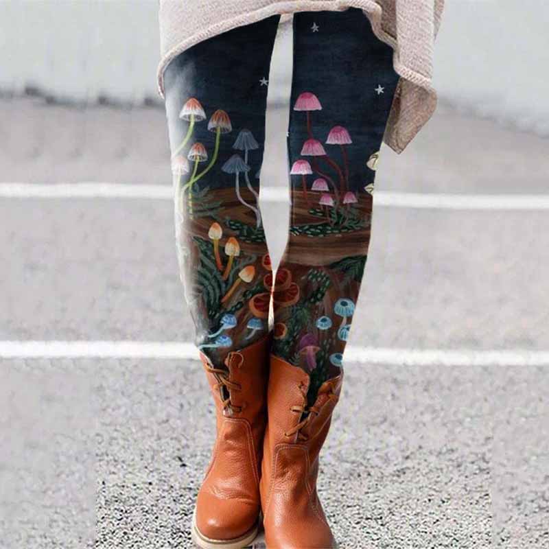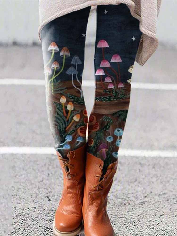 • Vintage Forest Mushrooms Printed Casual Leggings