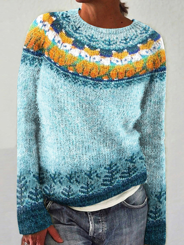 Vintage Fox Jacquard Christmas Crew Neck Sweater