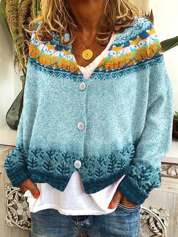 • Vintage Fox Knitted Jacquard Button Down Cardigan