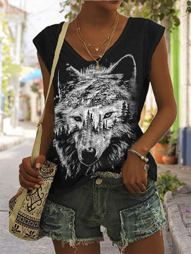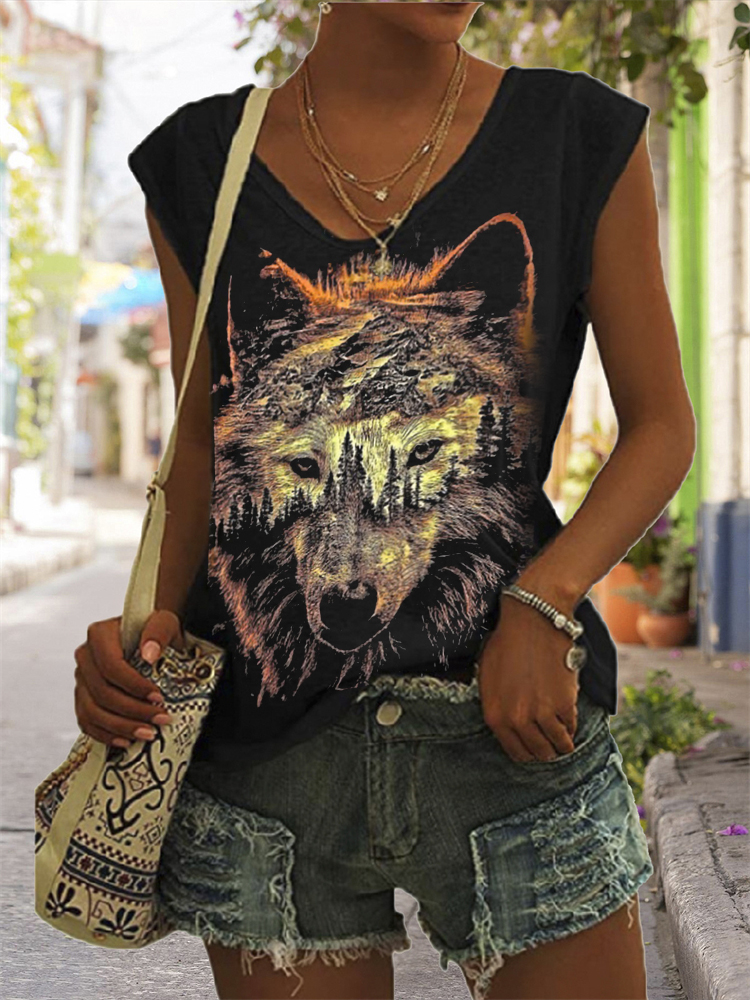 Wild Wolf Landscape Inspired Art V Neck Tank Top