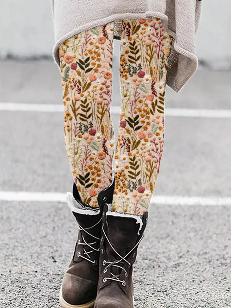 • Wildflower Meadow Floral Embroidery Art Comfy Leggings