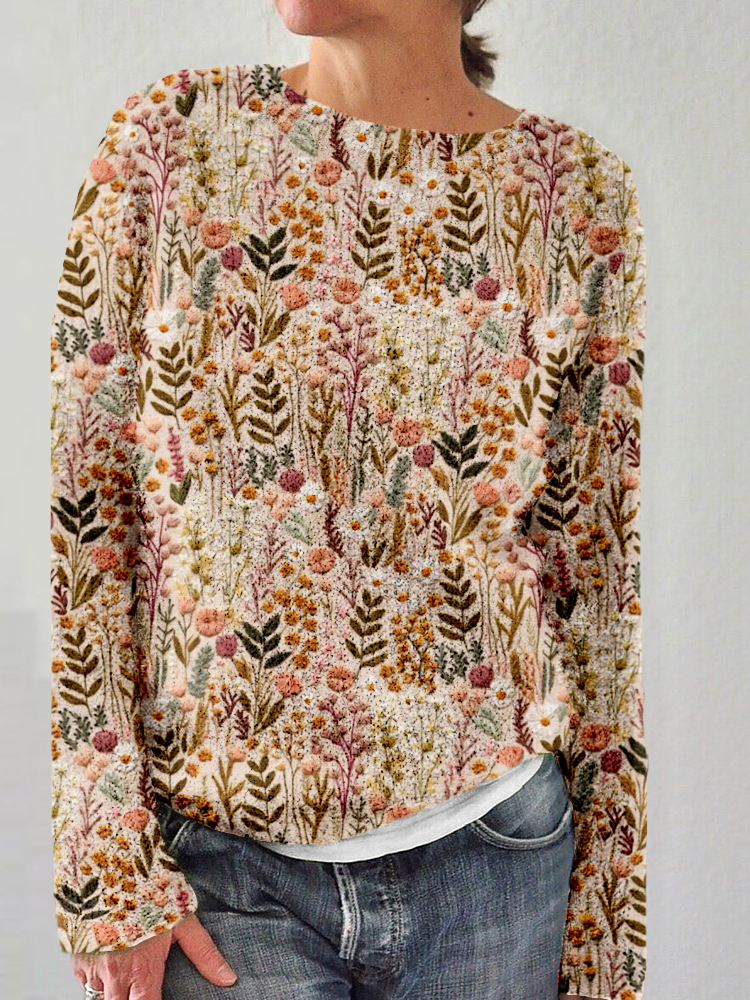 • Wildflower Meadow Floral Embroidery Comfy Knit Sweater