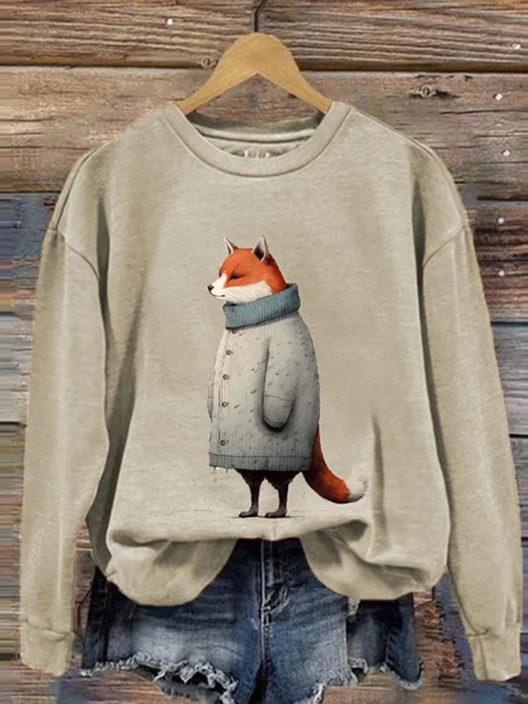 Winter Funny Cute Wonderland Clothing Fox Printed Sweatshirt