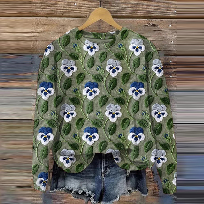 • Women's Embroidery Floral Leaves Graphic Print Casual Sweatshirt