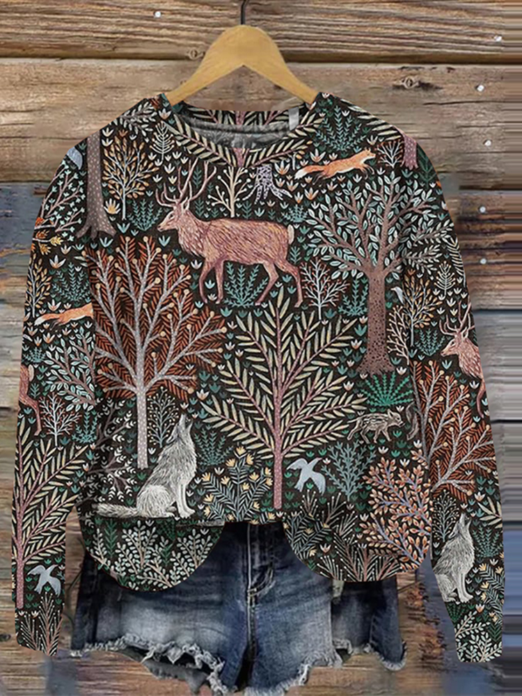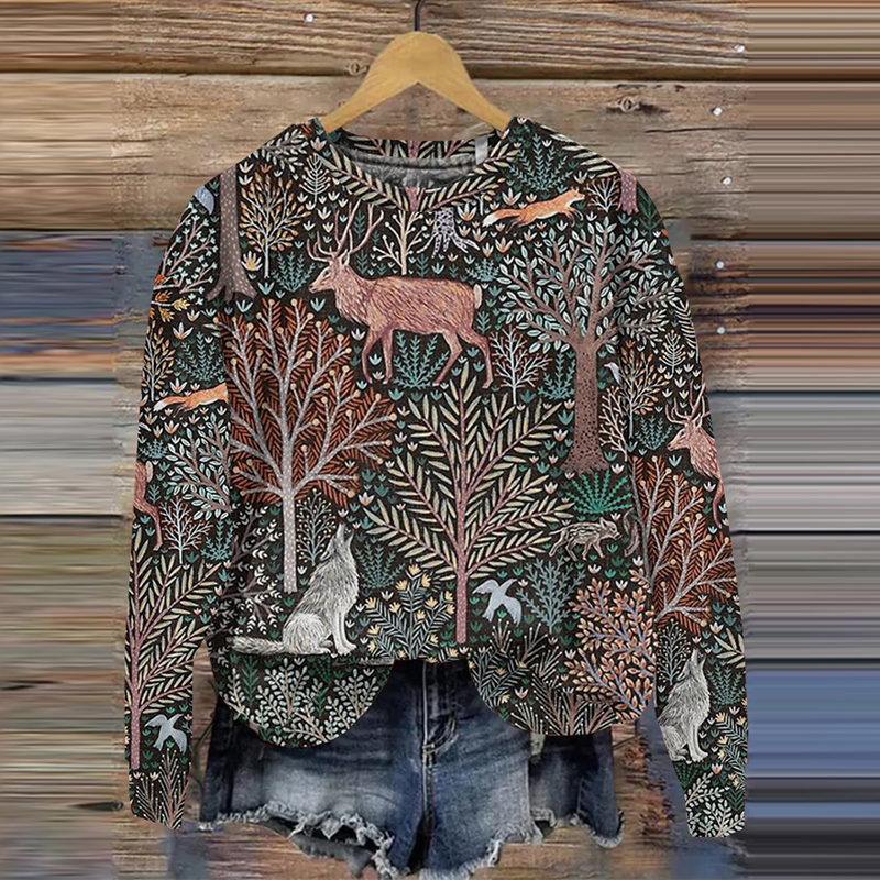 Women's Forest Animal Art Printed Casual Sweatshirt